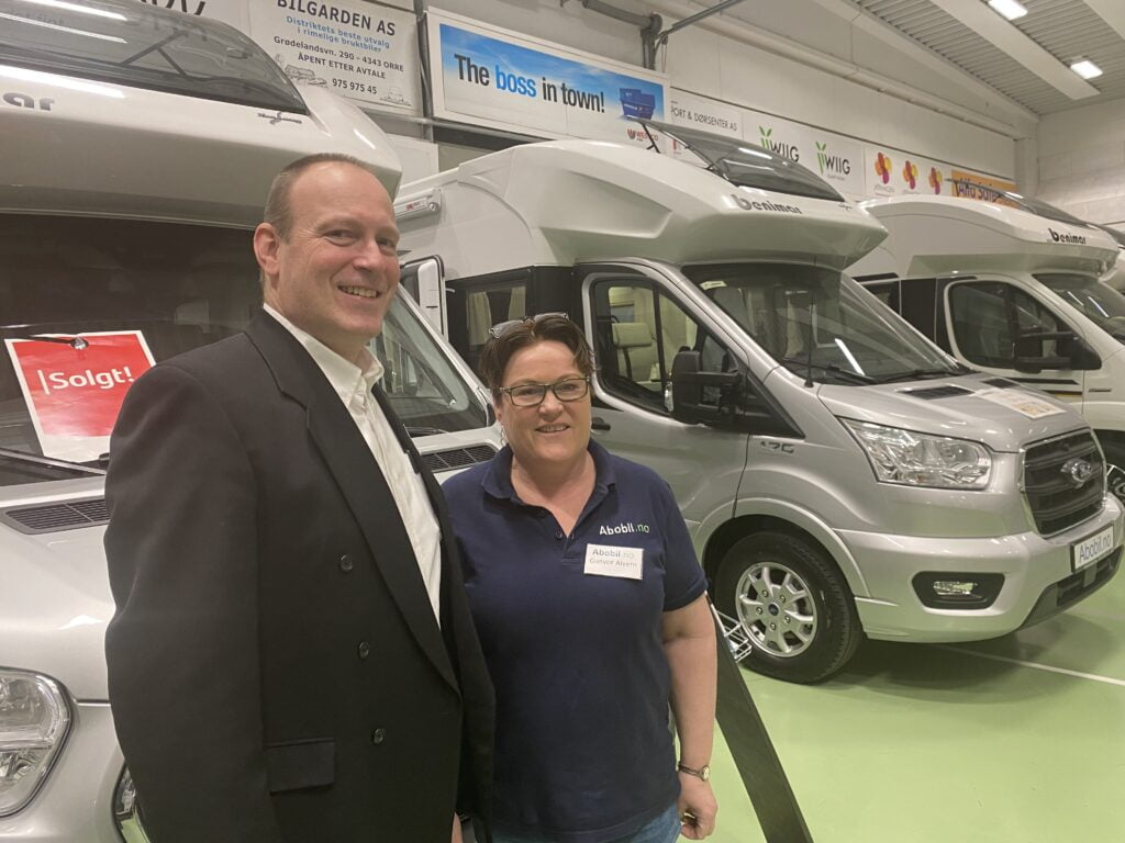 Arkivbilde: Tor Alvern og Gunvor A. Alvern fra Abobil på en større bobilmesse i 2022. Nå gleder de seg til Åpen helgen hos Abobil.
