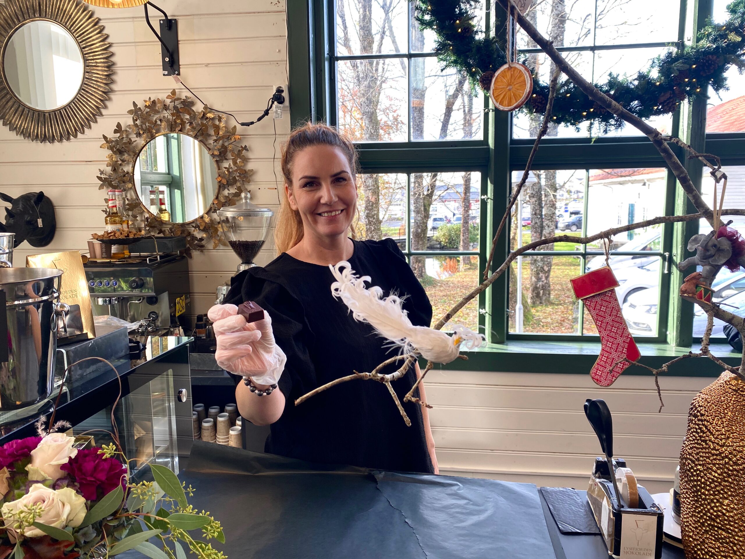 June Dahlskaas har drevet sjokoladefabrikken ved Lysefjorden siden 2014. Nå har hun egen julebutikk i Jørpelandsvågen.